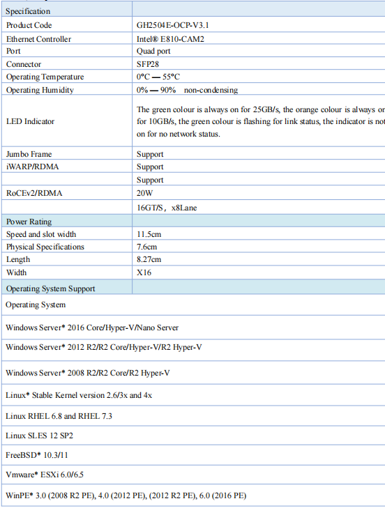 The 25G Quad Optical Ethernet OCP Mezzanine Card GH2504E-OCP-V3.1 is based on