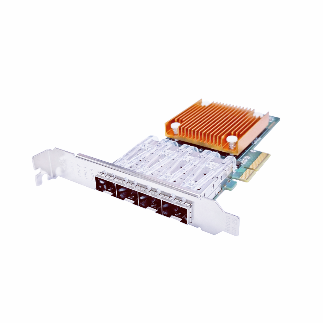 Gigabit four-port Gigabit Ethernet adapter provides SFP module connection