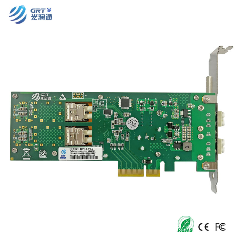 The Gigabit single channel dual ports fiber Bypass Ethernet bypass server adapter produced by Guangruntong, GH902EBP-V3.0 is a PCI-Express X4 network interface card, and the adapter contains two Gigabit Ethernet ports. The GH902EBP-V3.0 adapter is oriented to the inline network system, which can facilitate the maintenance of the network connection when the network fails.