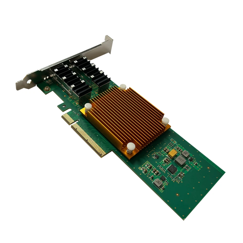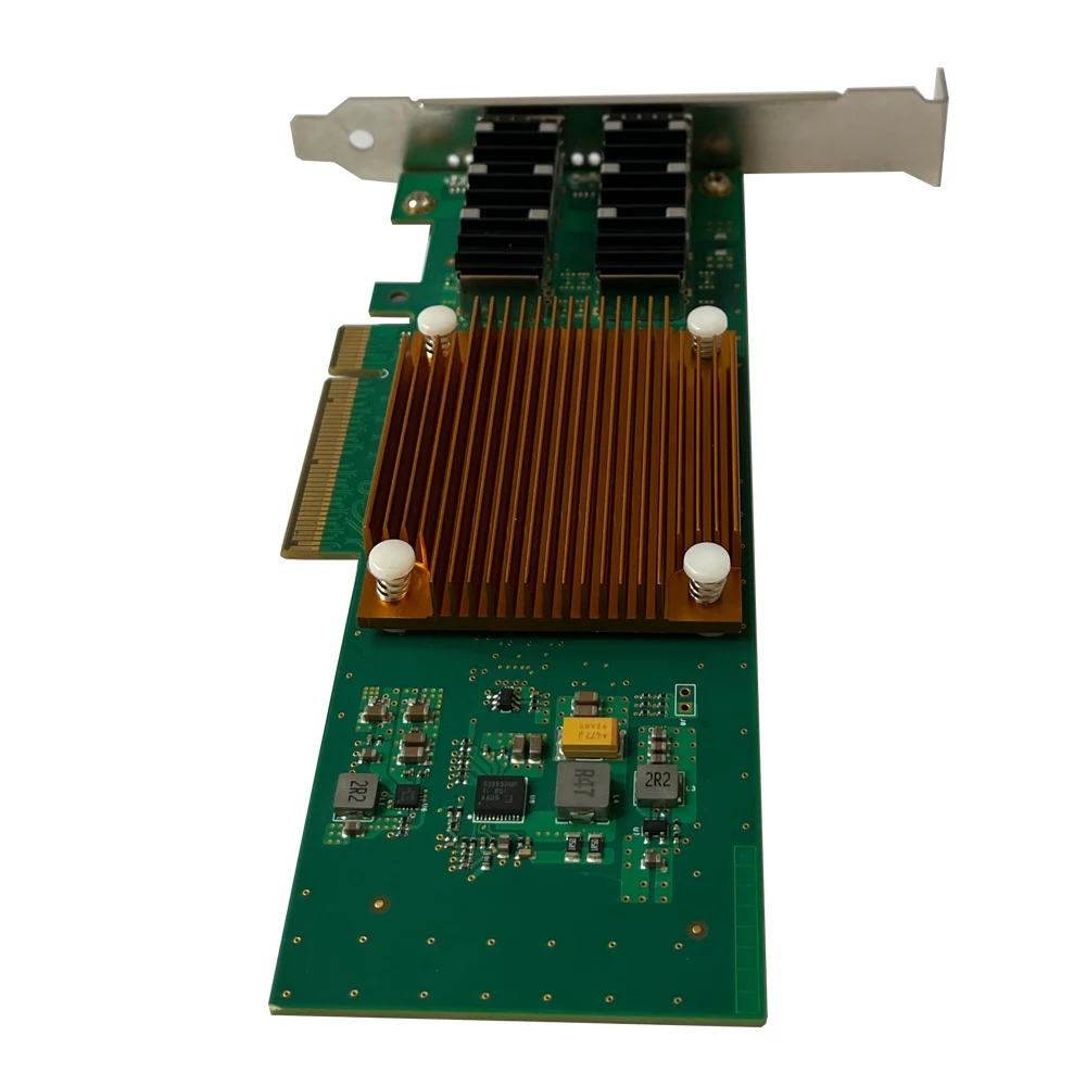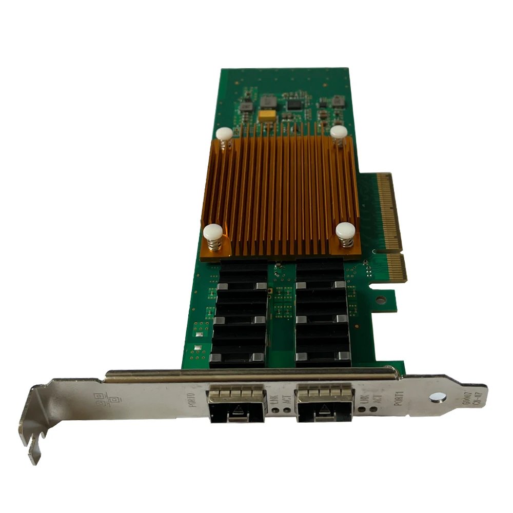 The 25G Ethernet PCI Express server adapter is based on the Intel XXV710-AM2 Ethernet controller with fully integrated Ethernet Media Access Control (MAC) and SFI interfaces. In addition to managing MAC and PHY Ethernet layer functions, the controller also manages PCI Express packet traffic at its transactional, link, and physical/logical layers. With hardware acceleration, the controller offloads tasks from the host, such as TCP/UDP/IP checksum calculation and TCP fragmentation.