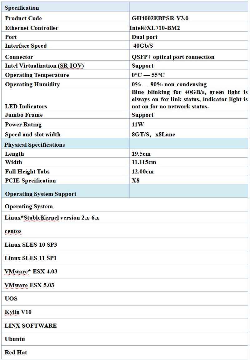 The GH4002EBPSR-V3.0's Dual-Port Fiber Optic 40 Gigabit Ethernet Bypass Server Adapter is based on the Intel XL710-BM2 Ethernet controller and offers superior product performance.