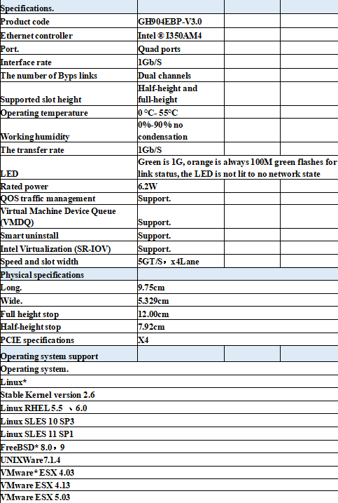 GH904EBP-V3.0 is a quad-ended Gigabit Ethernet bypass server adapter based on Intel I350AM4 Ethernet controller with superior product performance.