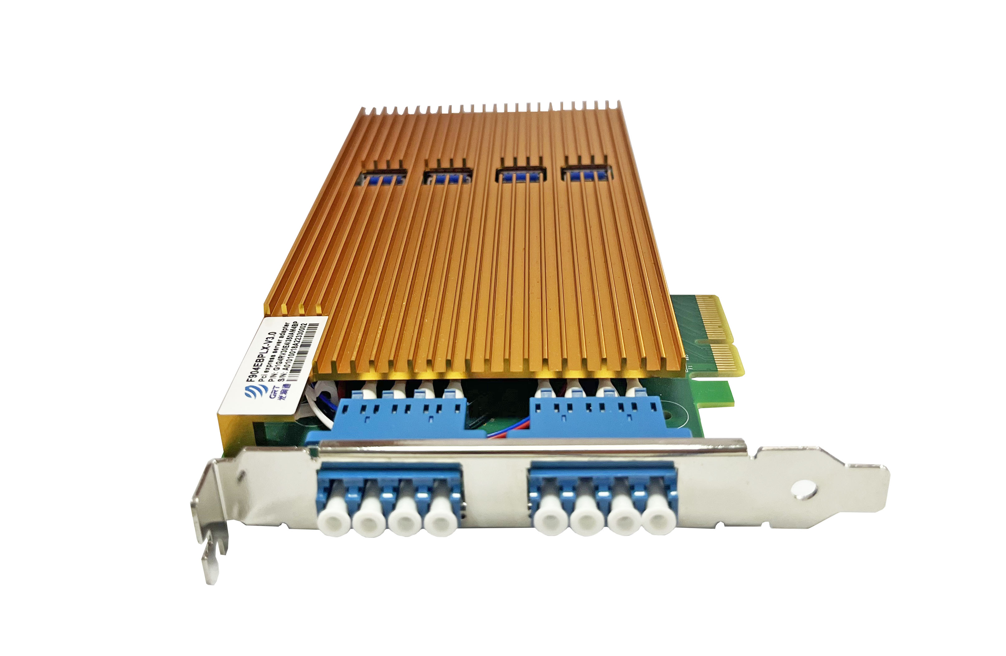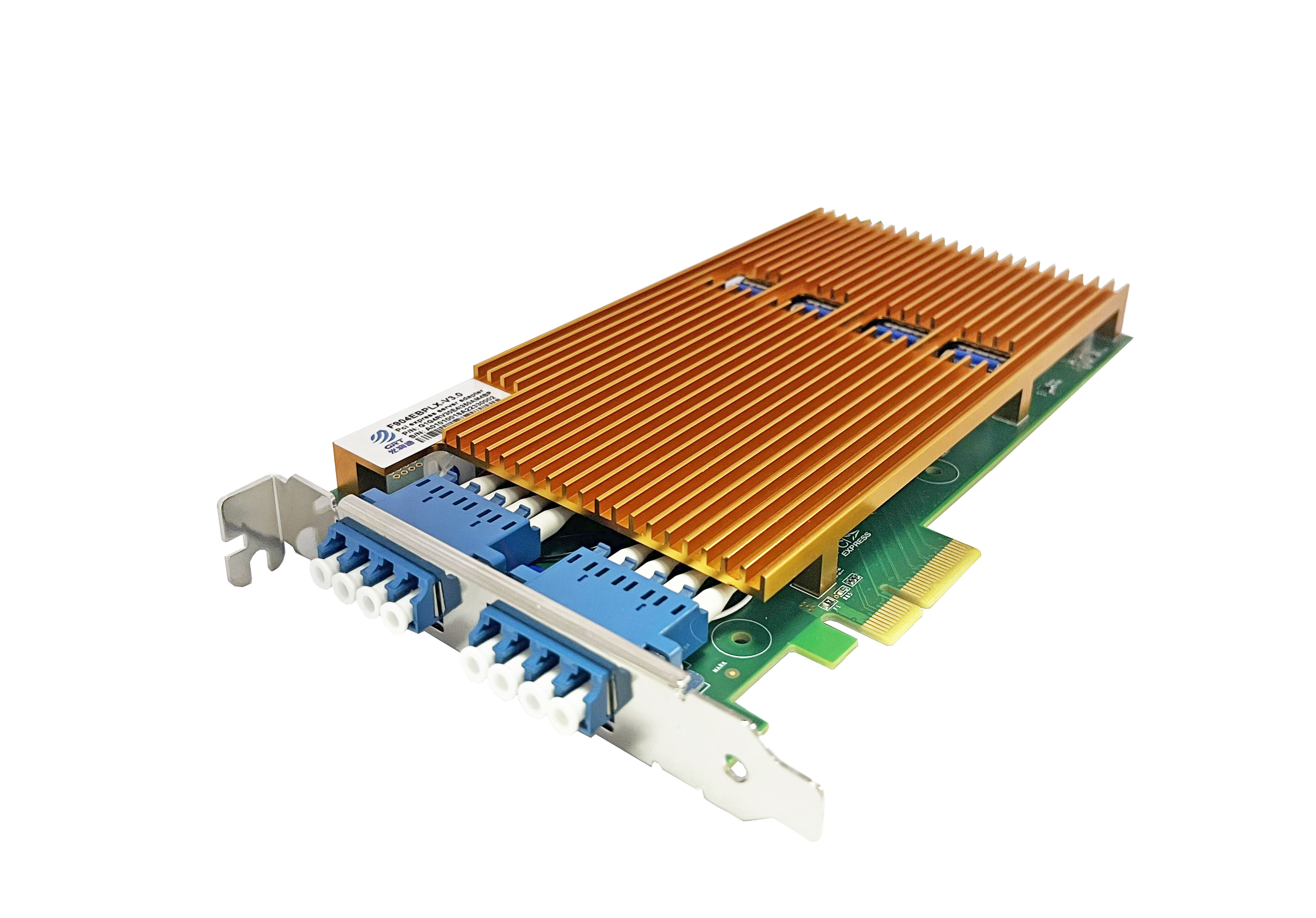 The Gigabit dual channels quad port fiber Bypass Ethernet bypass server adapter produced by Guangruntong, GH904EBP-V3.0 is a PCI-Express X4 network interface card, and the adapter contains four Gigabit Ethernet ports. The GH904EBP-V3.0 adapter is oriented to the inline network system, which can facilitate the maintenance of the network connection when the network fails.